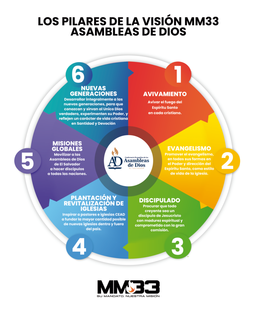 Para este fin la Comisión Nacional de Iglecrecimiento y el Comité ejecutivo en pleno, proponemos el siguiente plan estratégico para que sirva como guía de trabajo de la CEAD durante el periodo 2024 – 2033, en sincronía con la visión mundial de Las Asambleas de Dios MM33.